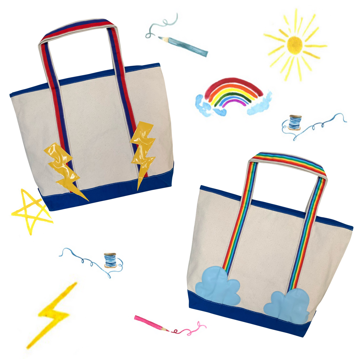 Our signature canvas trimmed with punchy grosgrain and topped with super fun patches.